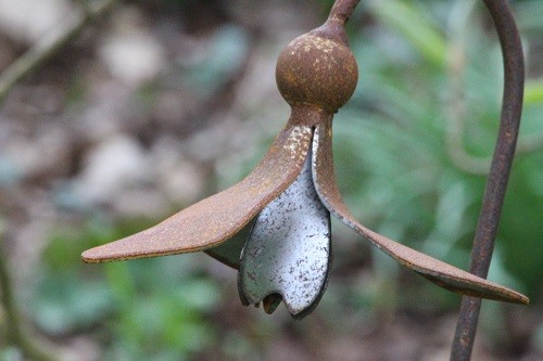 Rusty snowdrop has developed its rusty coating, but the centre which doesn’t get wet has stayed shiny which I think is rather nice, just like the snowdrops that have all green inner petals and white outer ones.