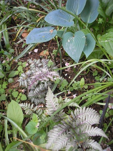 Fresh Foliage from Hostas, Ferns and Heucheras.