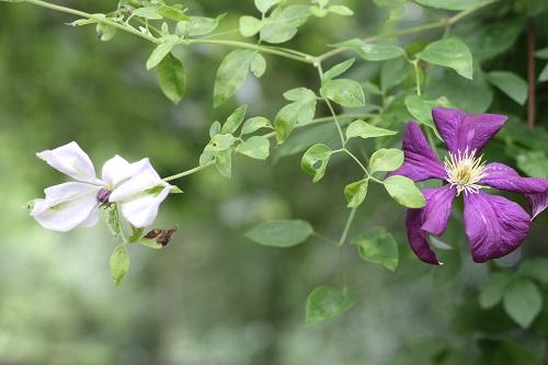 Clematis Alba luxurians has been here for a long time, last year I decided to plant C. Dark Prince next to it. What a lovely surprise when I found that I’d obviously forgotten that the stamens of C. Alba luxurians were the same purple as C Dark Prince.