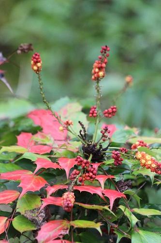 Mahonia nitans Cabaret in full autumn glory, I think the leaves are this wonderful colour because of the summer drought.