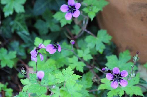 A creeping geranium which thinks it has world domination in the front border. Each spring I pull most of it out but then am glad at this time of year that what I have left has woven itself through all the other plants and is flowering when most of the others have finished.