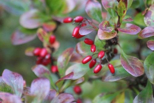 Lots of little berries on my Berberis atropurpurea Nana. A dwarf shrub with little berries for all my small furry mammals!