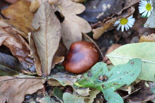 Fruit of the Aesculus tree or to those in the UK, conkers, fruit of the Horse Chestnut tree! The squirrels seem to enjoy planting them in my pots, they start growing in the most unlikely places, can be a bit of a problem when I have 4 Chestnut trees!