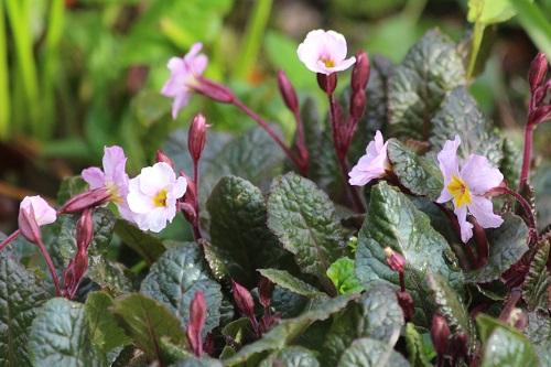 Primula Guinivere is looking pretty on the rockery, the dark leaves contrast beautifully with the flowers.