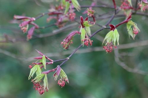 New foliage on Acer Osakazuki contrast nicely with all the tiny red flowers, they are the colour the leaves end up in the autumn.