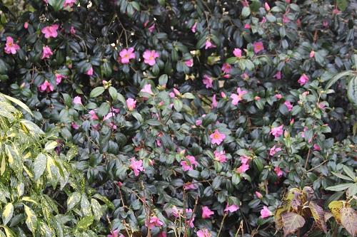 Part of the shrub has a Rhododendron in front of it, hiding a third of it, I think once I have enjoyed next years flowers on the rhododendron, it will have to be pruned so I can see more of the camellia.