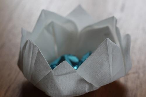 On Wednesday evening I went to our local WI meeting in the village hall, where we were taught how to make fancy folded serviettes, this is my effort at a waterlily!
