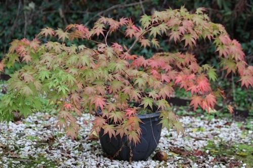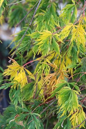 A little Acer palmatum dissectum, just a couple of years old, is now changing colour and should soon be all yellow.