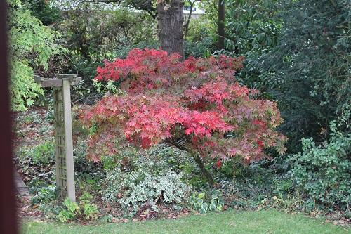 A little Acer palmatum dissectum, just a couple of years old, is now changing colour and should soon be all yellow.
