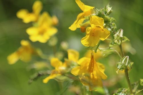 Up by the pond is a plant that seeds gently around, so I think it must be damp up there in spite of the drought, it is Mimulus moschatus. The commom name is Monkey flower.