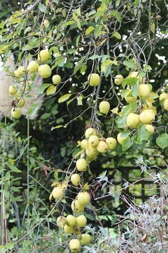 The foliage of your viburnum is gorgeous, Pauline – I unexpectedly caught a whiff of fragrance on mine during the week, as I hadn’t noticed the blooms till then. We only felt the touch of Benjamin but the effect on leaves was still noticeable. Shame about the apples – how long would they keep for if you picked and stored them? We get several local cats walking through our garden – it’s not the walking I mind, it’s the other things!