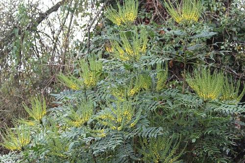 My Viburnum didn’t flower this year, maybe it’s too young. Yours is very pretty, as are these clumps of Mahonias, which you let flower.