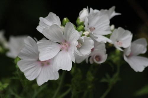 Malva moschata Alba which pops up up here and there in the garden, seeds about by itself, but never becomes a problem here.